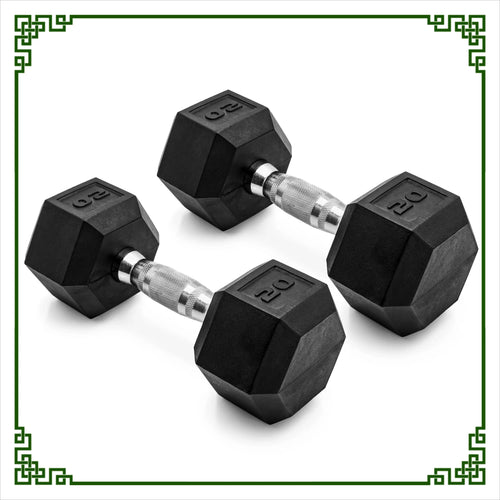 20lb Rubber Hex Dumbbell Pair, Non-Slip & Anti-Roll Design -